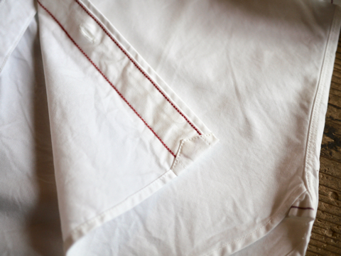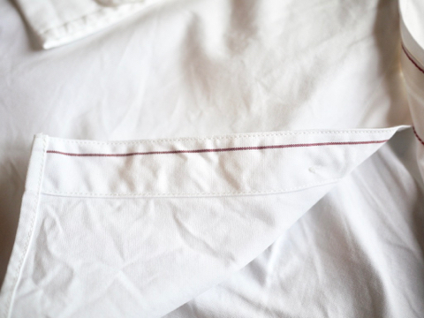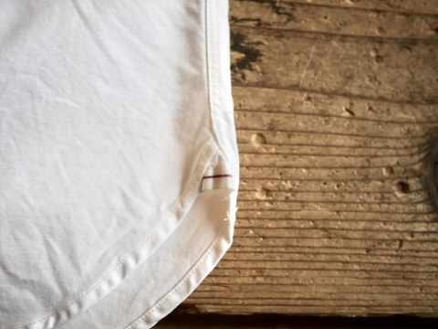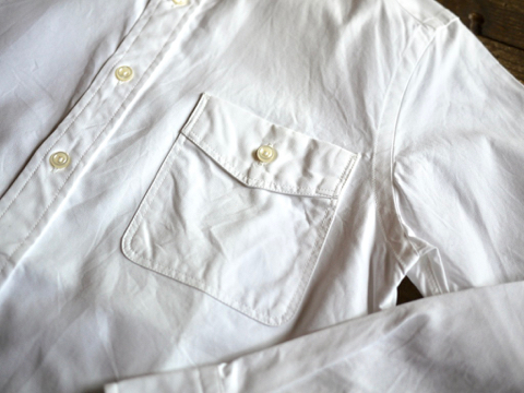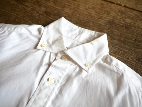 通常のボタンダウンシャツより優しい印象を受ける襟元です。