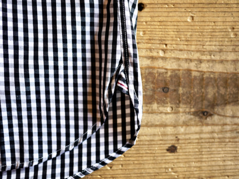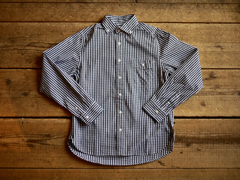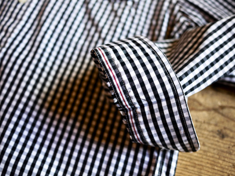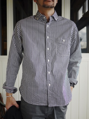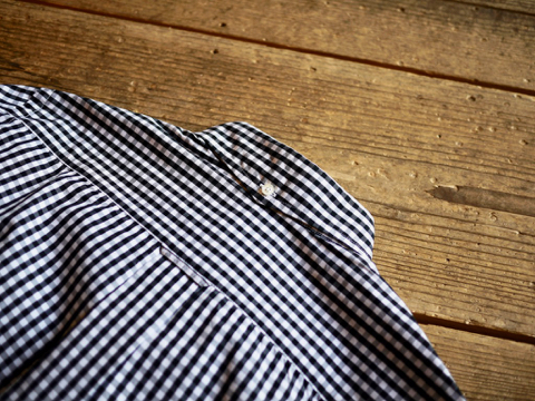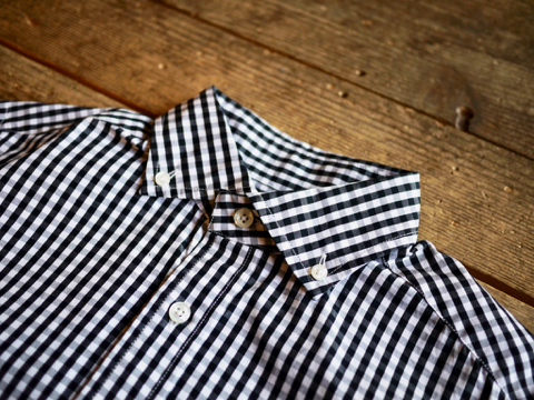 通常のボタンダウンシャツより優しい印象を受ける襟元です。