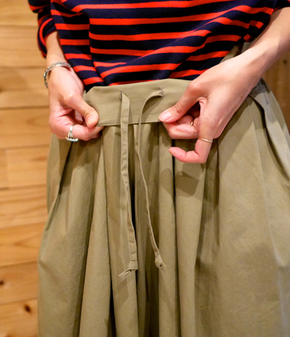 細部のこだわりはウエスト内部に隠したドローコード。