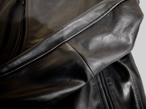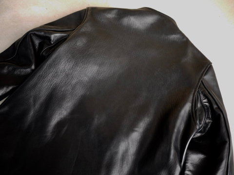 後ろ身頃は切り替えの無い一枚革。