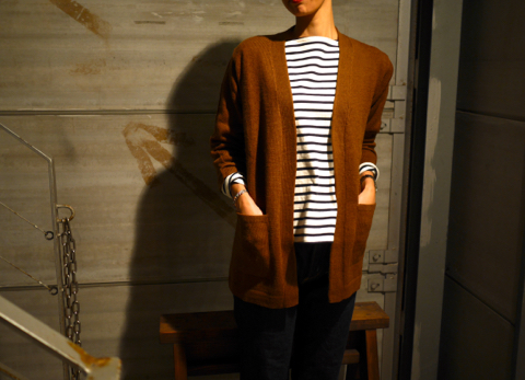 こちらはガウンのように羽織れるボタンレスカーディガン。