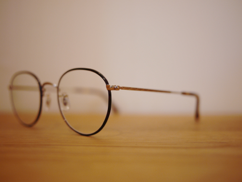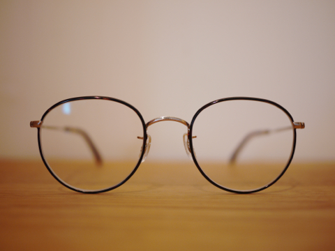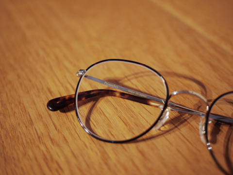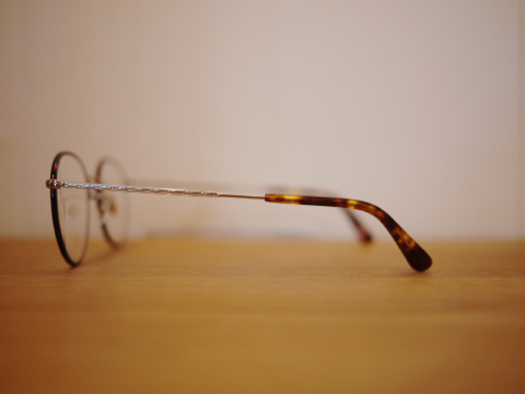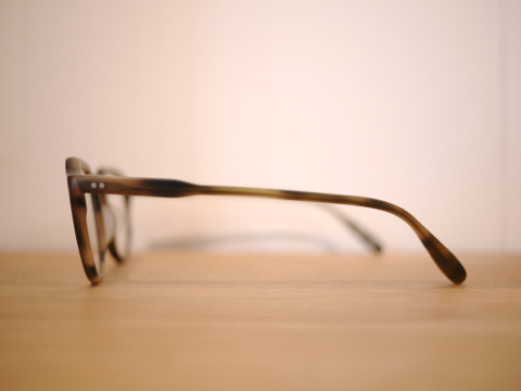 中細のフロントリムと極端なまでに細いテンプルとのコンビネーションが、