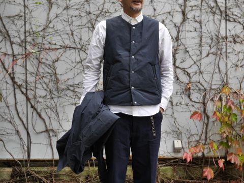 ベストを着用、実はハイテクな中綿を使用していて