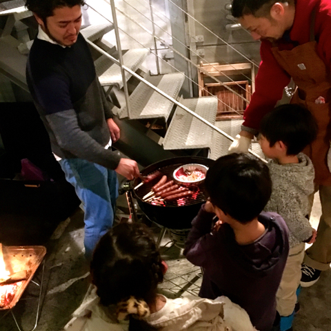 ついにはお酒で気分の良くなった大人がパスタを焼き始めたり…