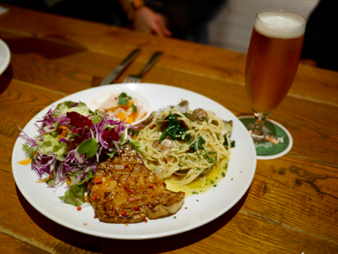 ワンドリンクもセットでディナー限定のボリュームある一皿。