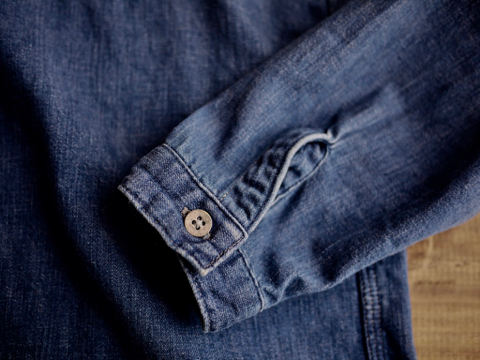 ボタンは加工が施された小ぶりなメタルボタンを使用しています。