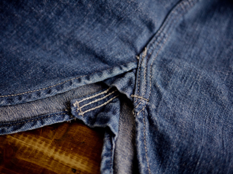 オリジナルの6オンスデニム生地にユーズド加工を施しており、