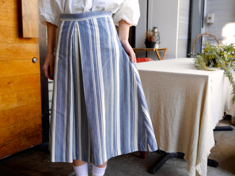 センタープリーツとバックスタイルが印象的な、スカートからご紹介です。