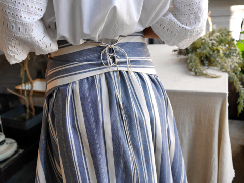 まるで貴族の方がウエストを締め上げる時使用していたコルセットのようなディテール。