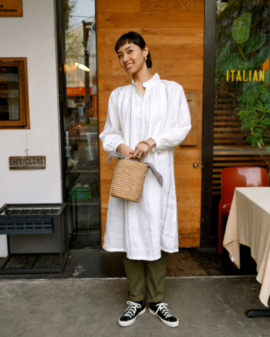 涼しげな透け感とシャリ感がラフな着こなしに。