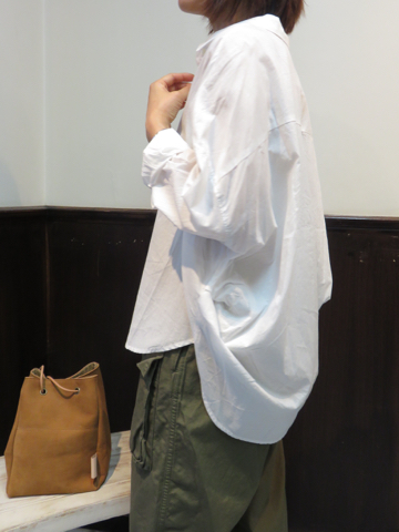 ゆったりとしたシルエットですが、ウエスト周りには浅めにタックが施されており、