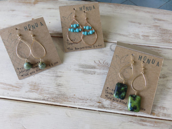 (左)アフリカンターコイズピアス w/14k gold filled ¥8,000+tax