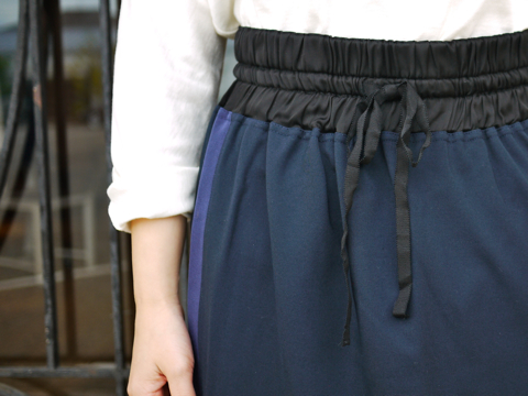 サイドに入ったラインがアクセントのジャージ素材のスカート
