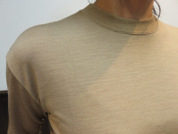 と思うほど、触った感触は滑らかで、光沢のある生地を用いたニット。