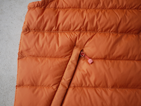 両サイドにジップ付きのポケット、裾にはドローコードが付いて便利で実用的