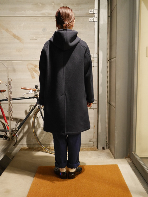 しっかりと立ち上がり、存在感あるフードがこのコートのチャームポイント。