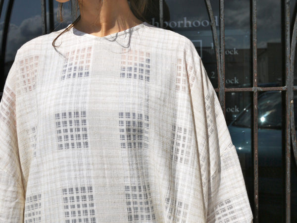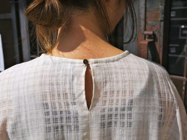 後ろは着脱用に黒蝶貝ボタンを使用しています