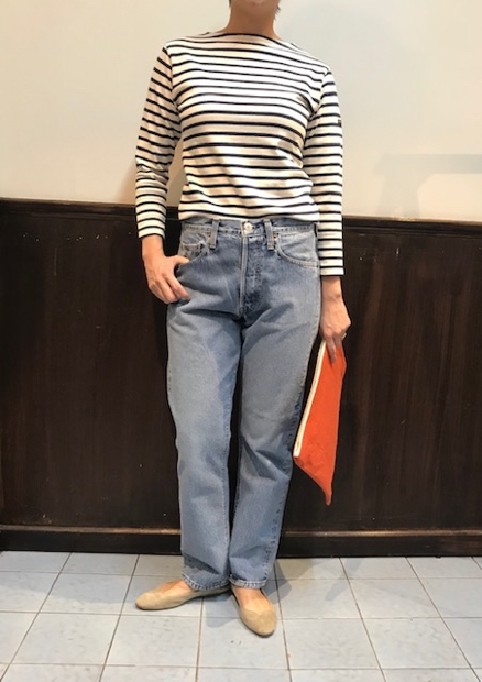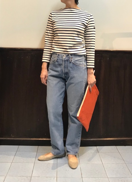 今回着用のSAINT JAMESはSIZE0をチョイスしコンパクトなトップスを選びました。