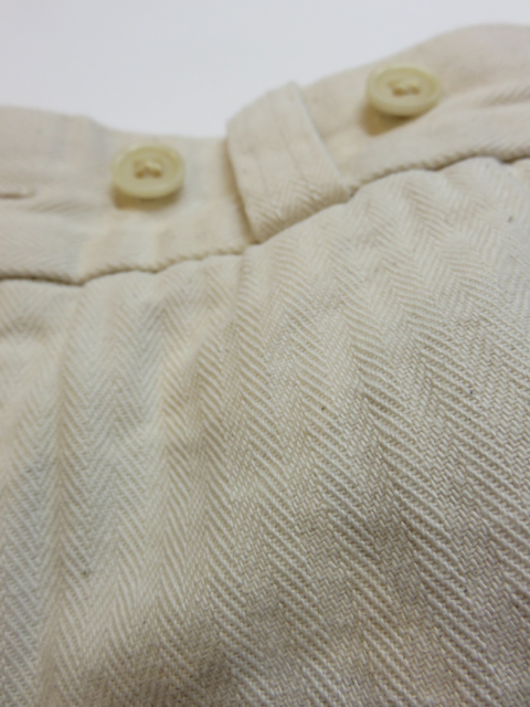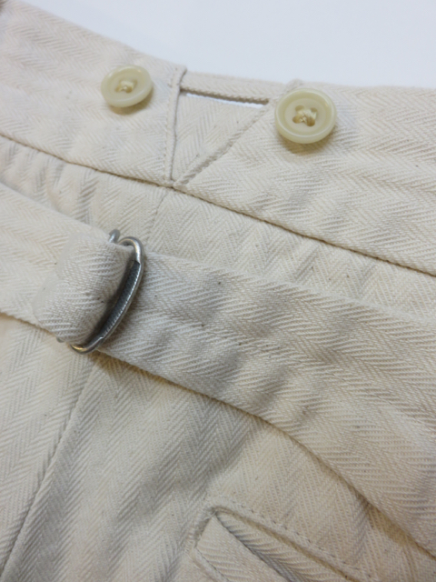 このパンツの一番の魅力はオリジナルで織り上げた中厚手のコットンヘリンボーン素材。