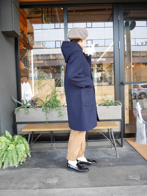 自然と裾に向かって広がったAラインのシルエットと、襟元〜フードのボリュームがniceバランス!!