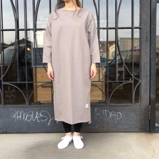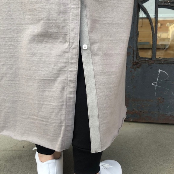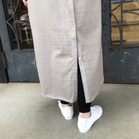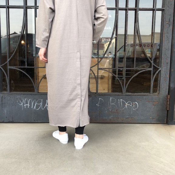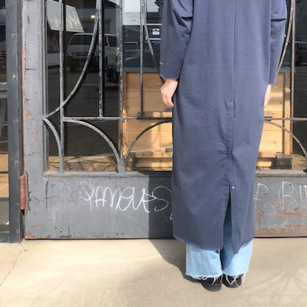 膝下までの着丈で1枚でワンピースとしてもレイヤードスタイルもできる