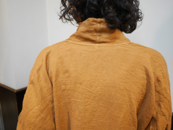 この、着物を思わせるような襟が特徴的で、さりげない存在感があります。