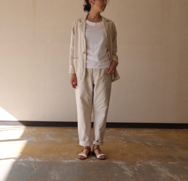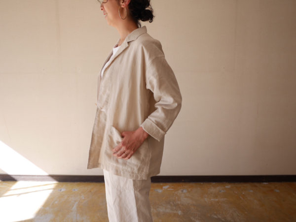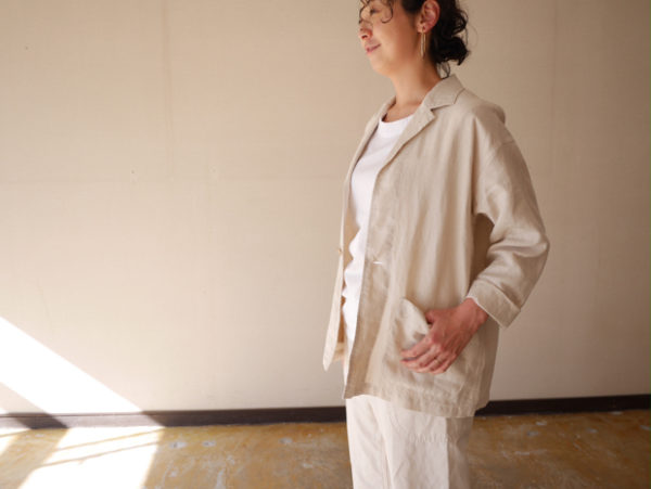 ワークウエアのディテールを取り入れたリネンジャケットが