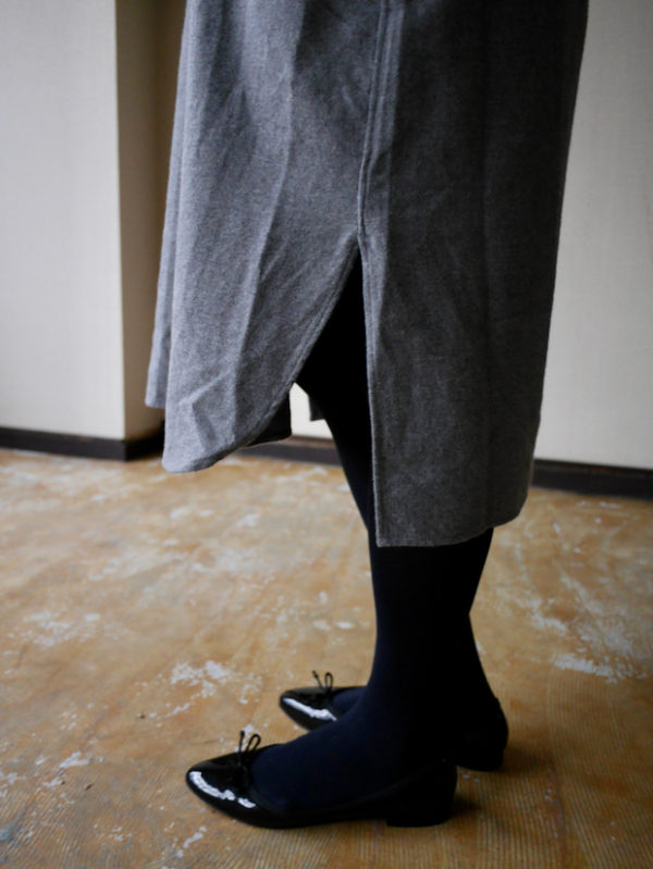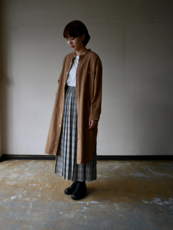 膝下丈でいつものDELICIOUSよりも少し長めの着丈、全体的に余裕のあるゆったりとしたサイズ感ですが、サイドのスリットの効果でスッキリと、小柄な方にも着用していただきやすい絶妙なシルエットに仕上がっています。