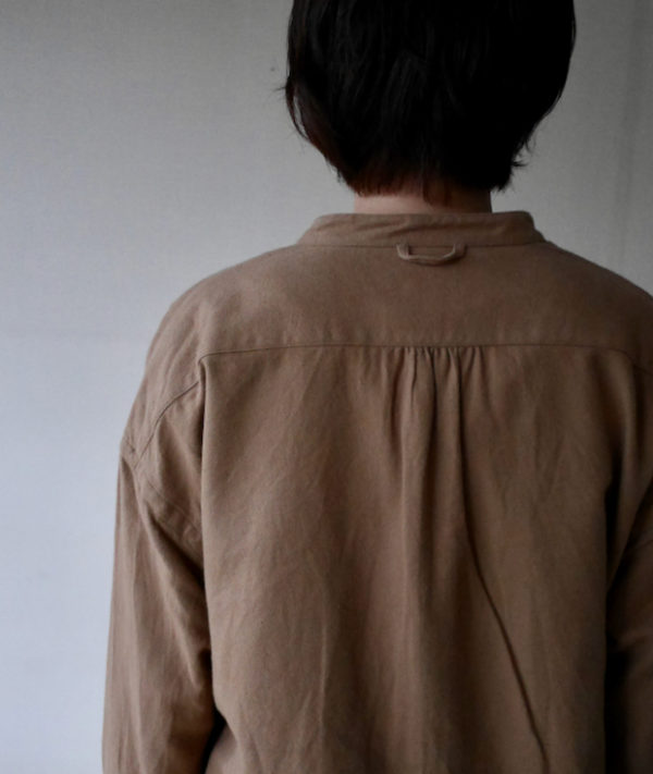 背中にはさりげなくギャザーが施され、ハンガーループもちょっとしたアクセントになっています。