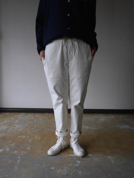 温かみのある生地を使った白パンツは、以外とお持ちでない方も多いかと思いますが、