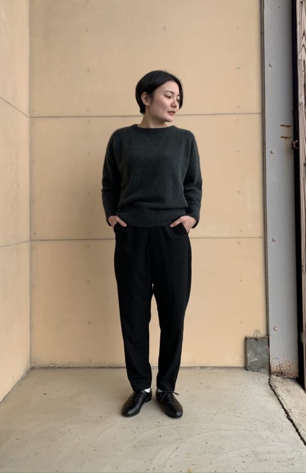 後ろ下がりで丸みのあるシルエットにウールの柔らかさも加わり落ち感も綺麗です。