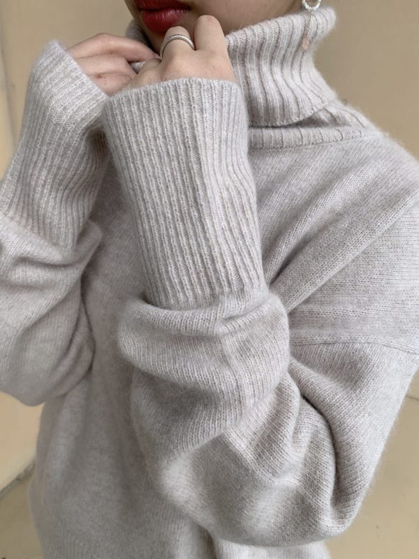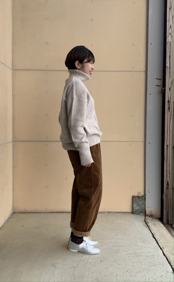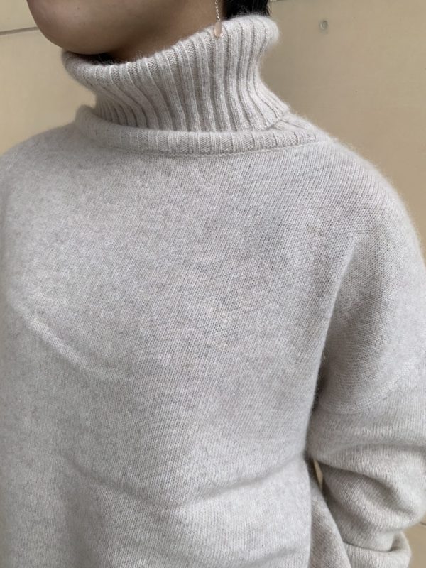 クルーネックに比べてゆったりとしたシルエットのタートルネック。