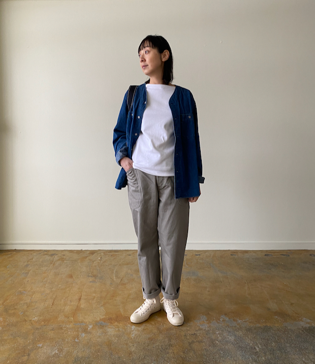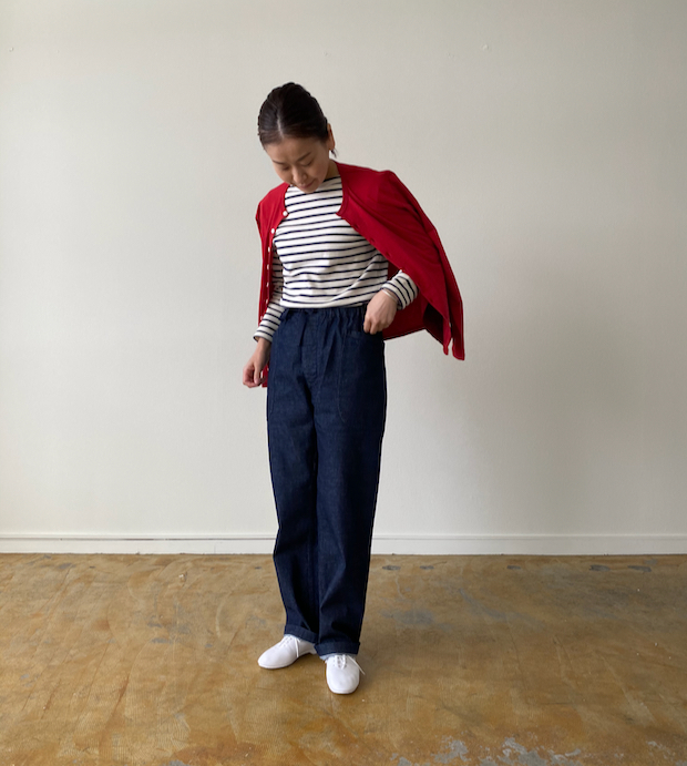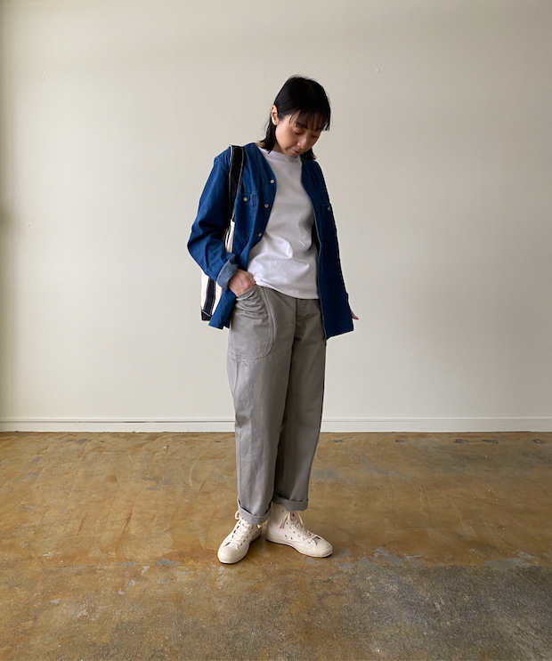 ワタリがゆったりとしているのでリラックス感のあるシルエット。