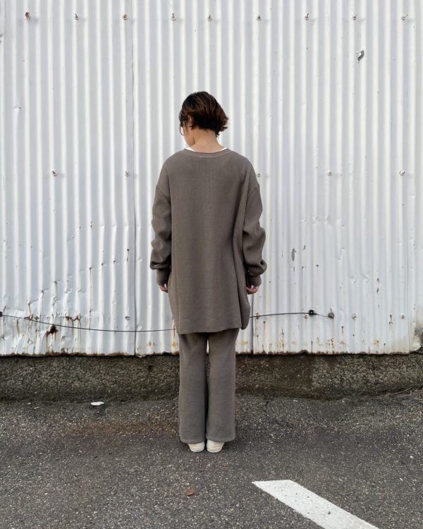 ゆったりとしたドルマンスリーブは少し長めのリブとメリハリを効かせ