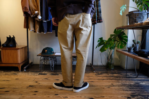 普通のチノパンよりも、どこか抜け感のあるオシャレな仕上がり。