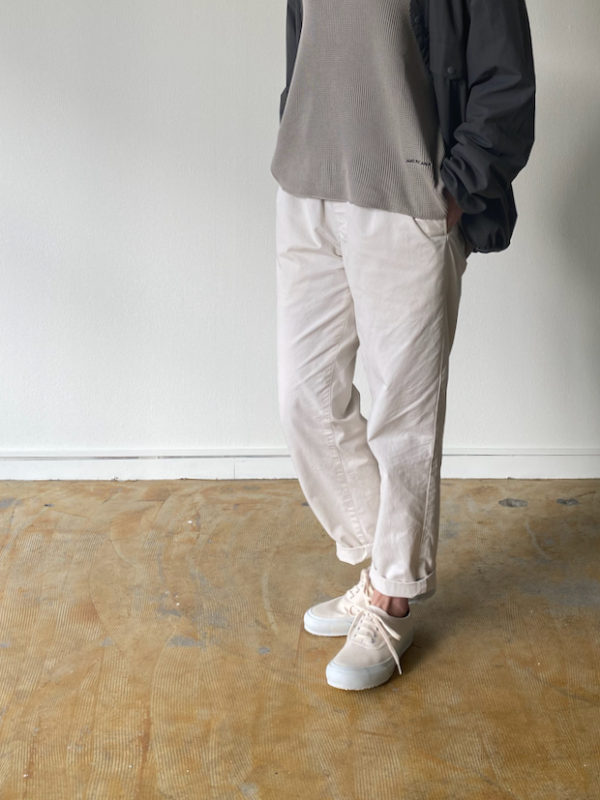 着こなしの幅も広く、スタイリングが楽しみなチノイージーパンツ。