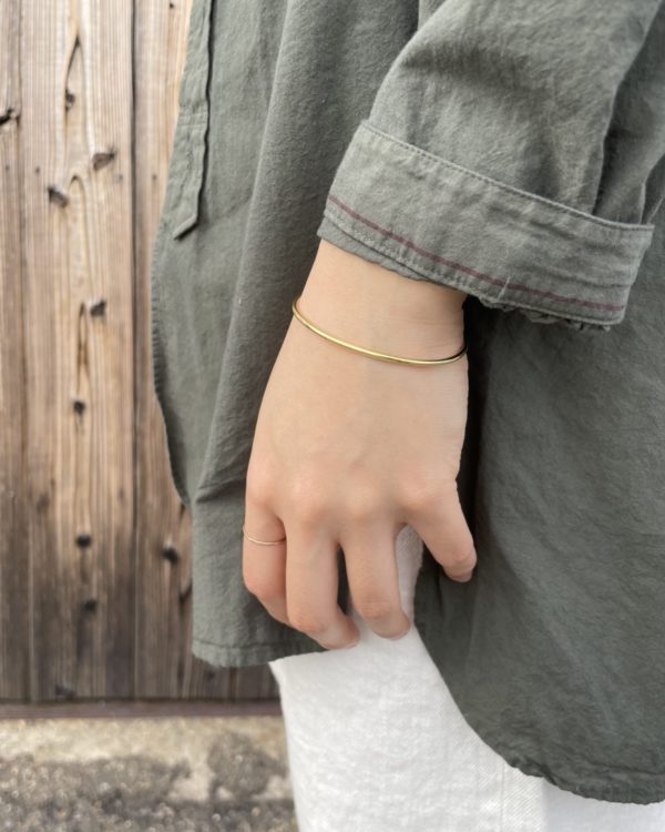 バンドカラーのすっきりとした襟元はインナーも選ばず優秀です。