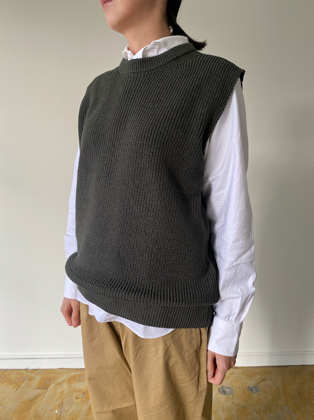 五泉ニットシリーズ、コットンベストが再入荷いたしました。
