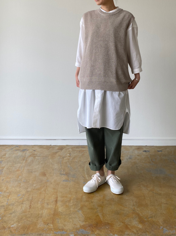 ざっくりとした編み地でとっても軽い着心地なので、今から真夏..秋まで長く活躍してくれる1枚です。