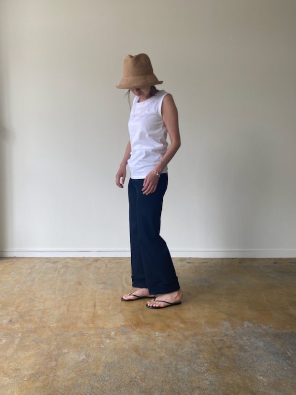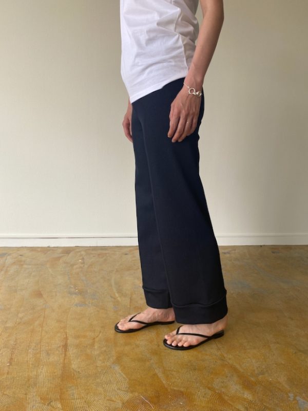 折り返した裾がアクセントのパンツ。
