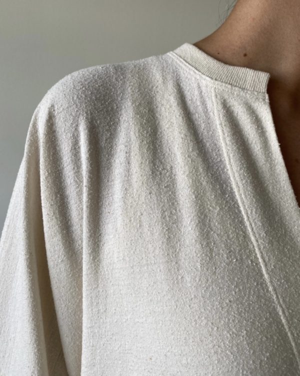 定番のローシルクの糸を用いて、天竺で編んだ素材を使用しています。