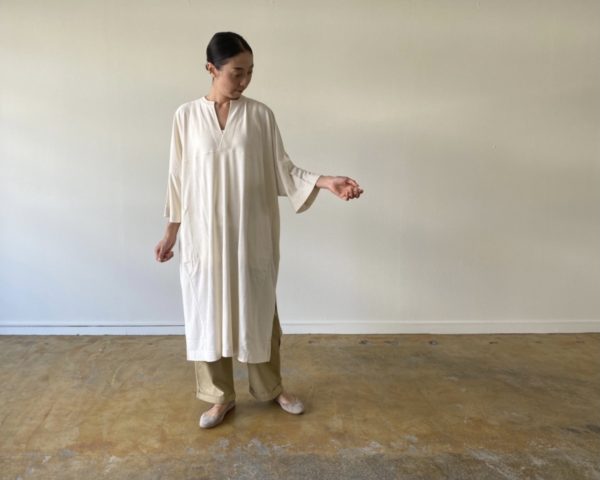 『unfil』より定番のローシルクを使ったワンピースが到着です。