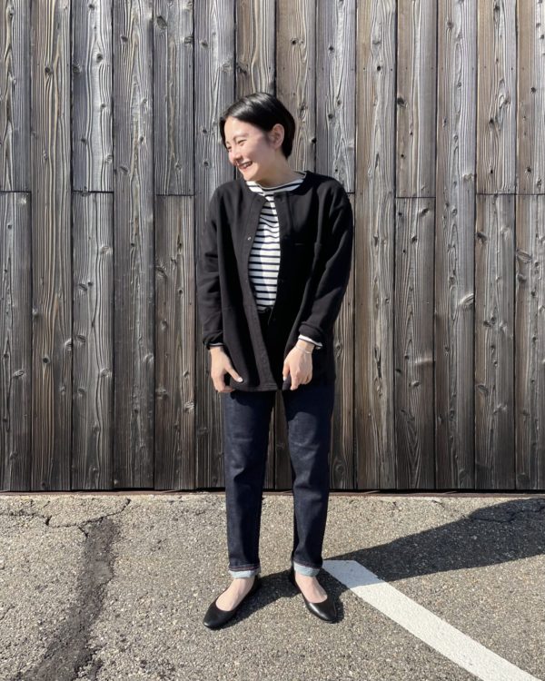 今回は黒のパンツと合わせてかっこいい感じに。
