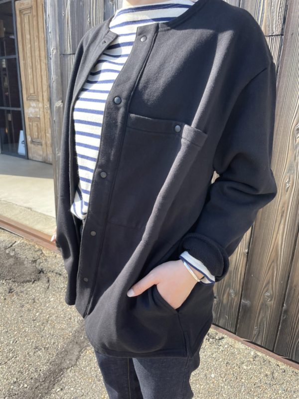 スウェット素材のカーディガンなので時期も長く使えて活躍間違いなし。