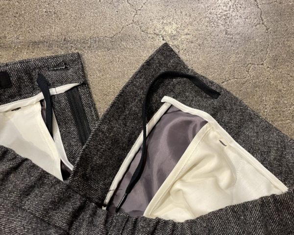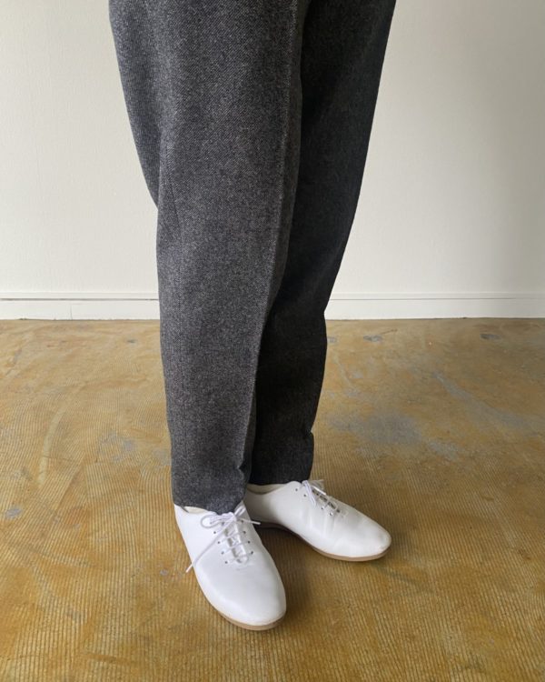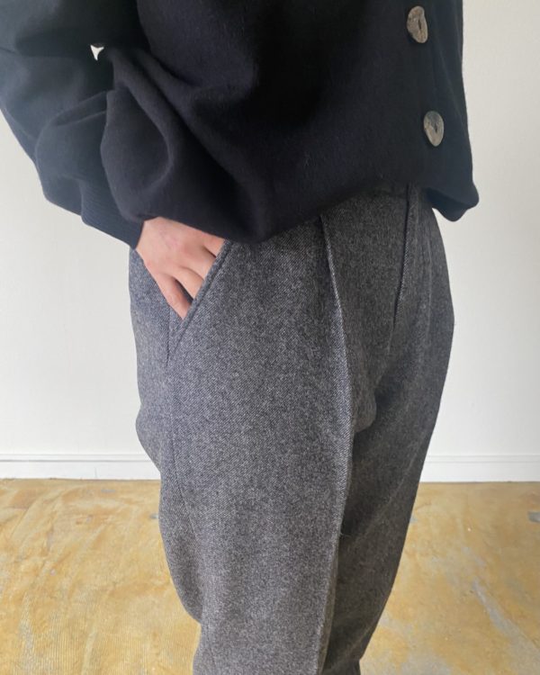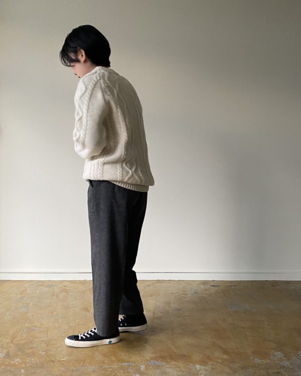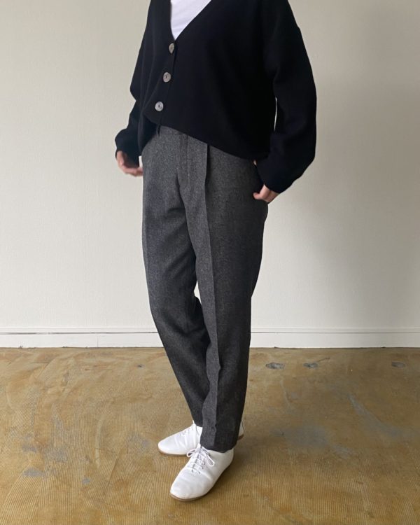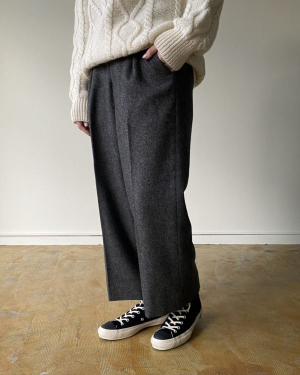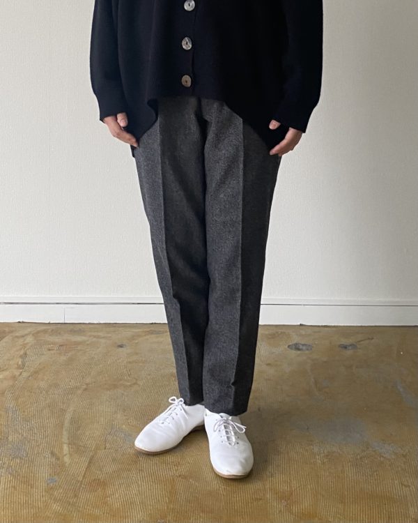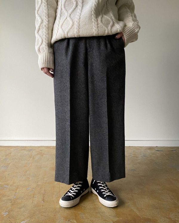 中肉厚のウールナイロンフラノ生地を使用したトラウザーパンツ。
