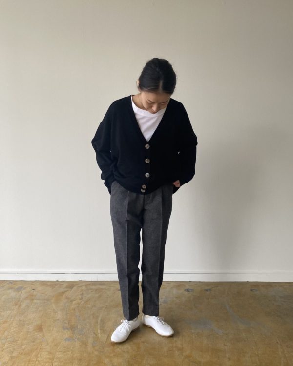 足首に向かってしっかりとテーパードの効いた細めのシルエット。