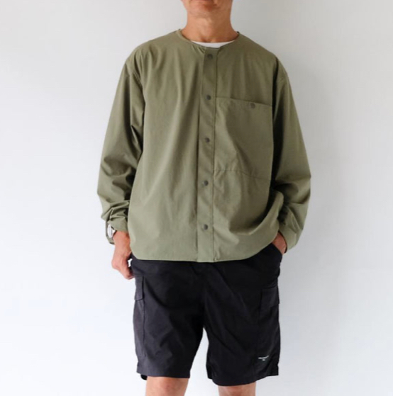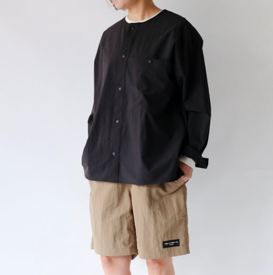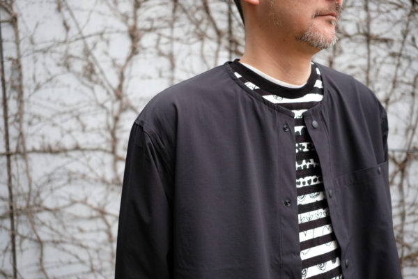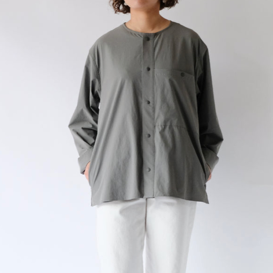 首元をスッキリ見せてくれるノーカラー。。