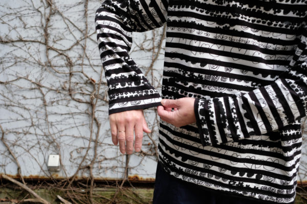 裾とウエストをゴムシャーリング仕立てにした