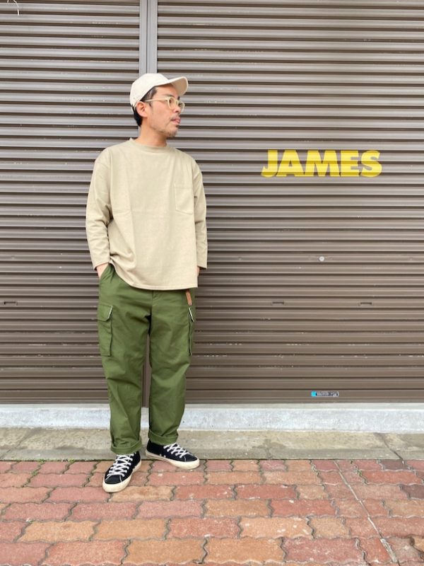 ORIBEのワイドフレンチカーゴパンツとコーディネート。