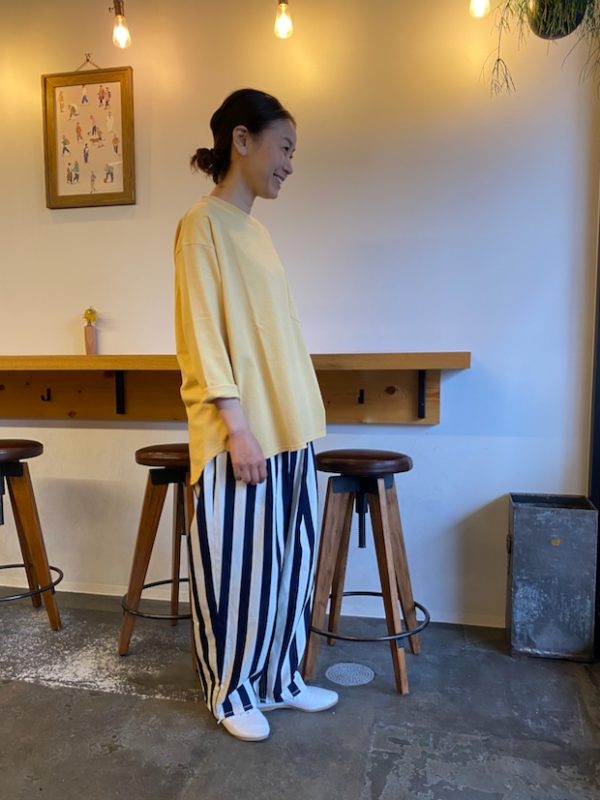 たっぷりな身幅なのでワイドタイプのボトムスが相性抜群。